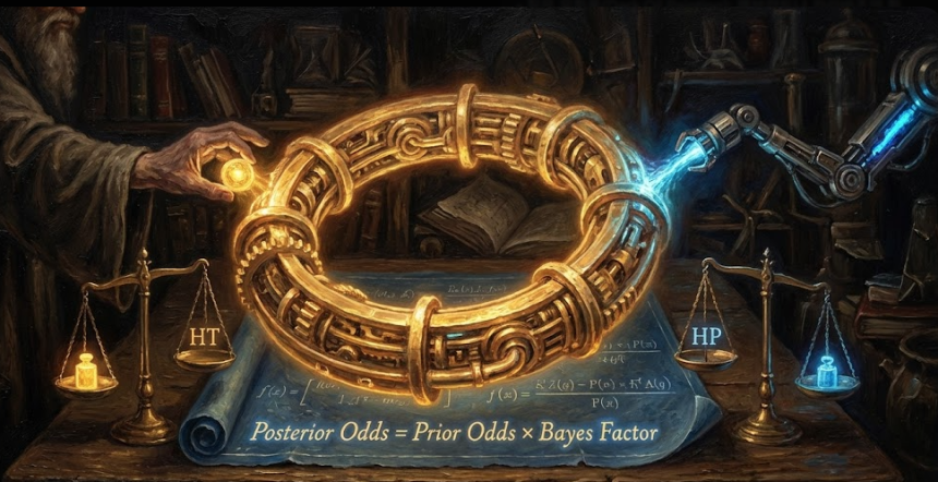 The story you just read is not merely a novel. It is like a castle built upon rigorous mathematical calculations. Here, I reveal the mathematical blueprint of how the ‘Traditional Bayes‘ Theorem’ learned in textbooks transforms into the ‘Odds and Bayes Factor‘ used in the field.
